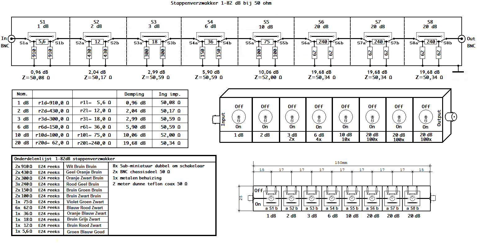 Re: Stappen verzwakker 1-82dB 50 ohm