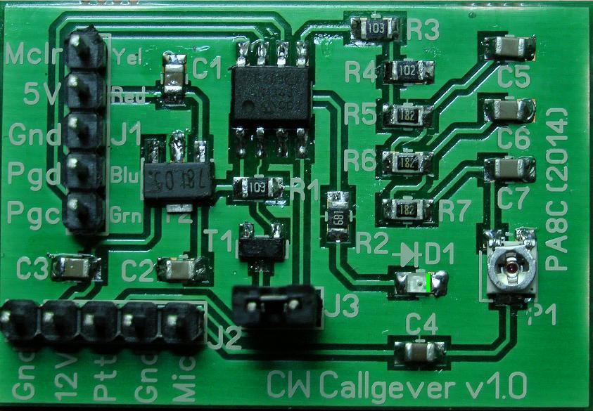 Het geheel is opgebouwd op een professionele print die door de firma Imdes in Bad Bentheim is gefabriceerd volgens mijn ontwerp. Alle connecties worden gewoon parallel op de microfoon en de PTT schakelaar aangesloten, het audioniveau inregelen met het potmeterje op de callgever en alles werkt in één keer zonder problemen.