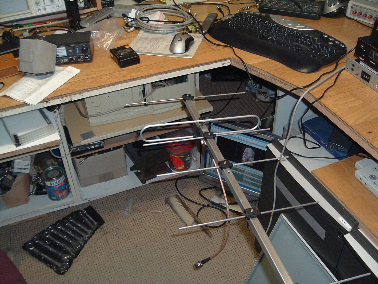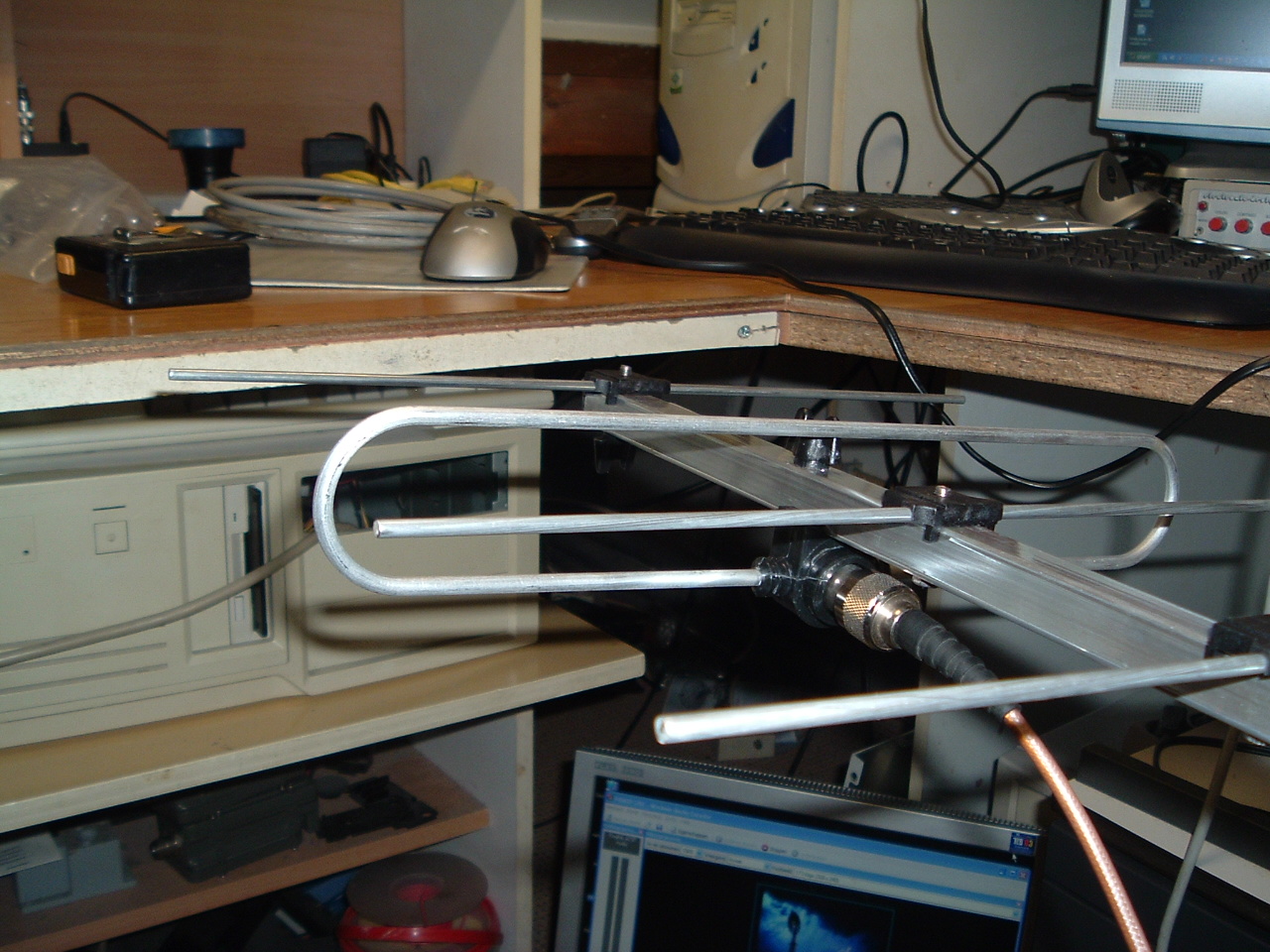 Nog leuker was een foto van de HB9CV kabelgootbeam geweest, maar de katten zijn daar mee aan de haal geweest, het ding is spoorloos ...