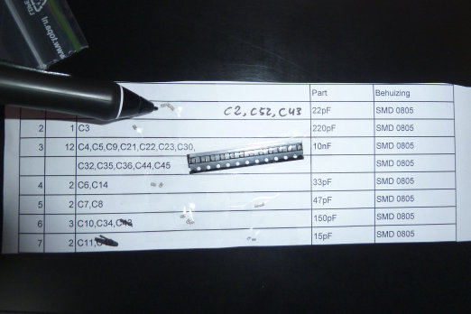 Ik had de onderdelenlijst gebruikt waar alle onderdeeltjes opgeplakt zitten. Ik had wel de nieuwe gedownload maar dus niet gebruikt. Dat papier met de tantaal info had ik wel gezien en was mij bekend, ik had het er maar voor de zekerheid bij gezet omdat op de silkscreen en printlay out niet staat aan welke kant de plus moet.