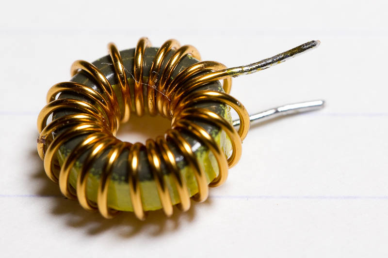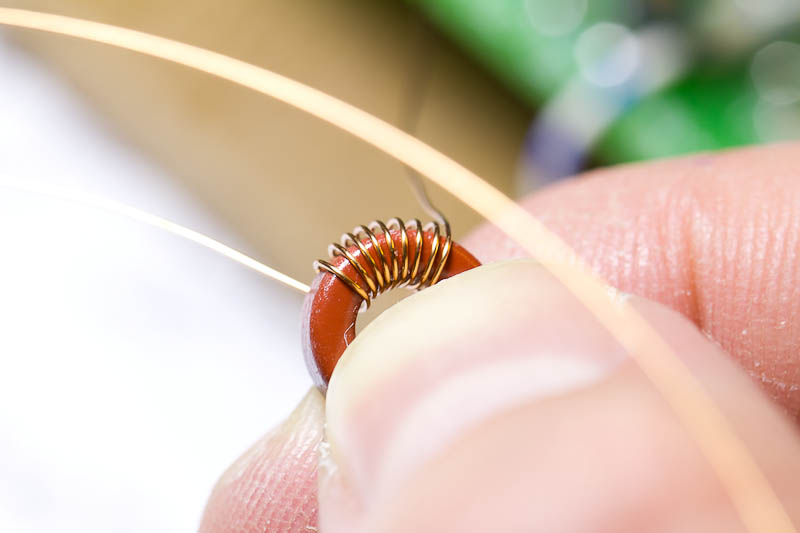 Het wikkelen gaat hetzelfde als de bovenstaande T37-6 (geel), behalve dat je hier meer wikkelingen moet maken met dunner draad. Wikkel strak op de vorige wikkeling en pas op dat de draad niet in lussen komt, of in de knoop raakt. Dat gebeurt snel met dit dunne draad namelijk.