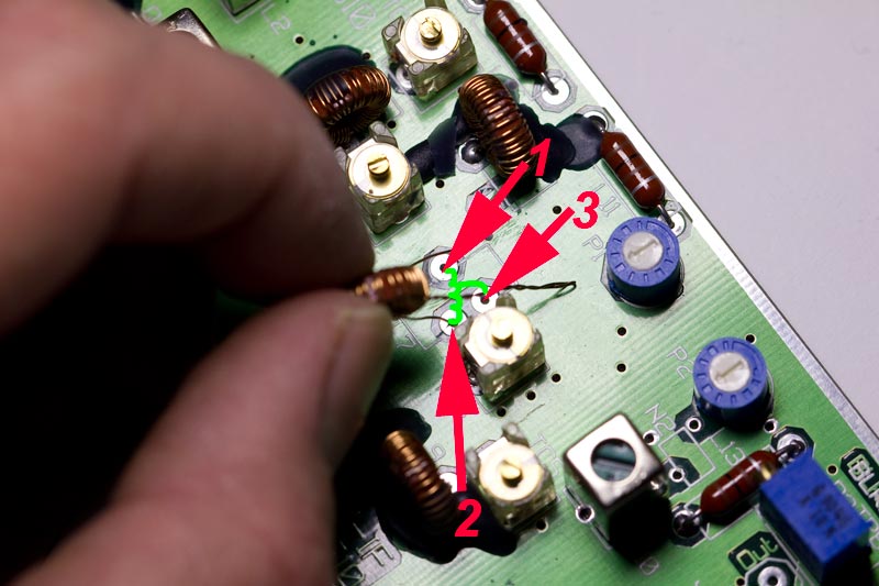 Van L4 wordt de interne 47pF C verwijderd.