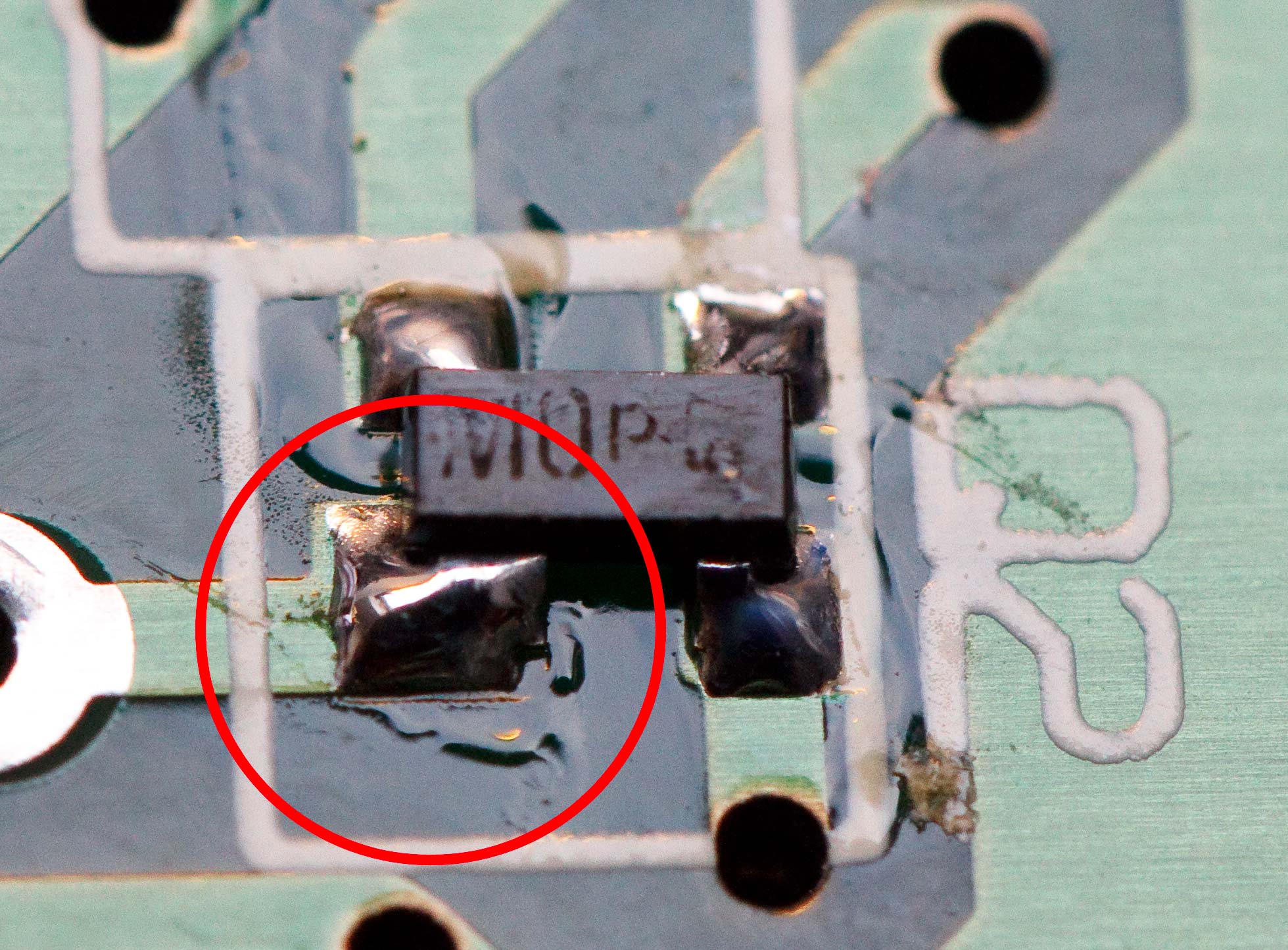 BF-998 heeft één dikker pootje. De print heeft op dat punt ook een dikker eilandje.