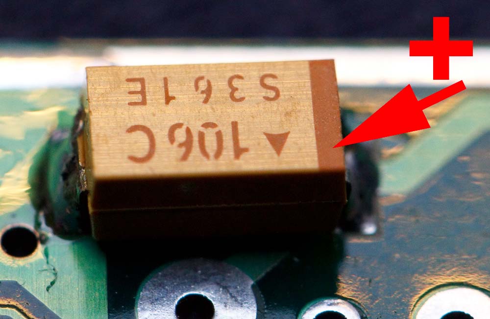 Denk ook aan de tantalen, de streep is plus, maar kijk in het schema waar de plus moet komen. Dat staat niet op het silkscreen of de componenten print.