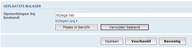 • De bijlage of de foto staat nu op deze server en is nu al gekoppeld met je bericht. Je kunt je bericht nu aftypen en na het drukken op de knop "Bevestig" wordt je bericht weergegeven met daaronder de bijlagen.